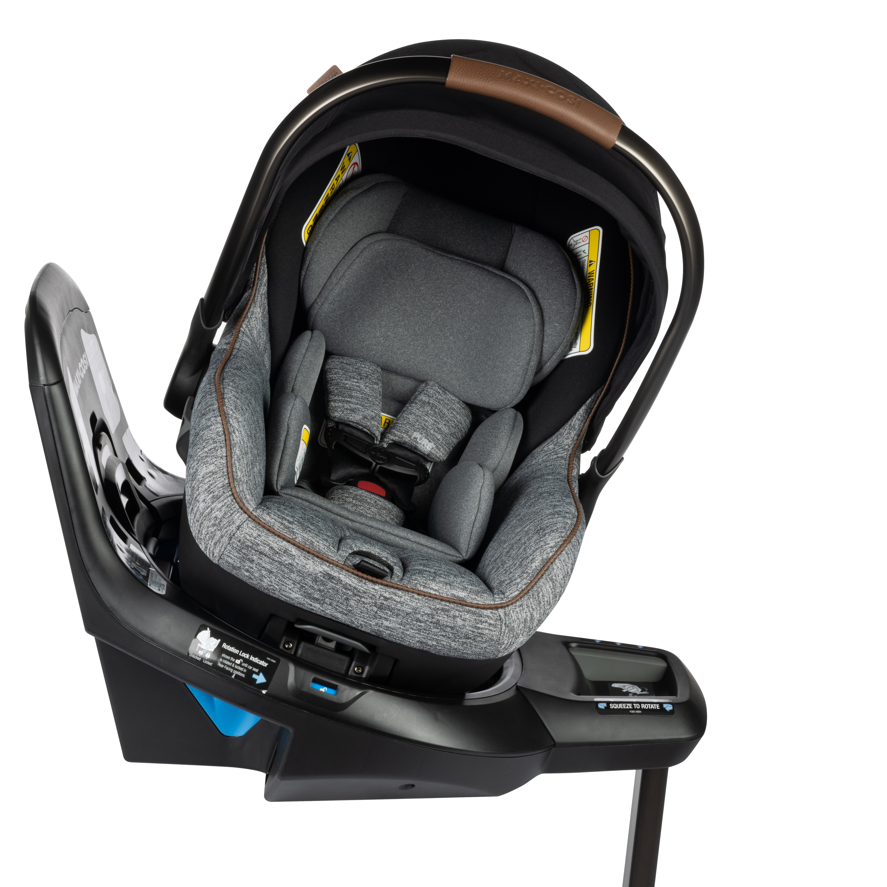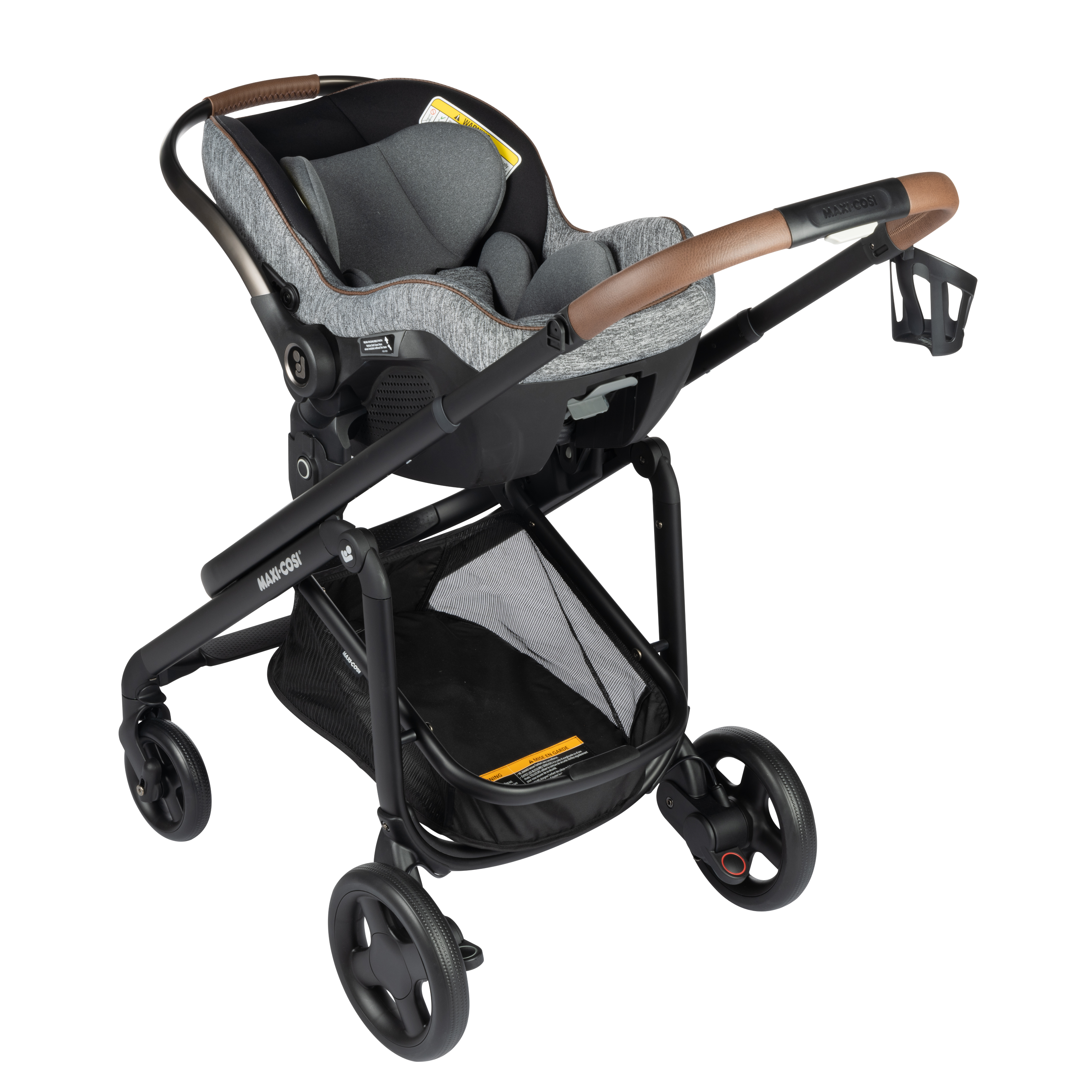 We recommend switching to the stroller seat in a reclined position once baby can support their head on their own, which is typically about three months old. Then, you can switch to fully upright in the stroller seat when baby can sit up on their own, typically between five and seven months.