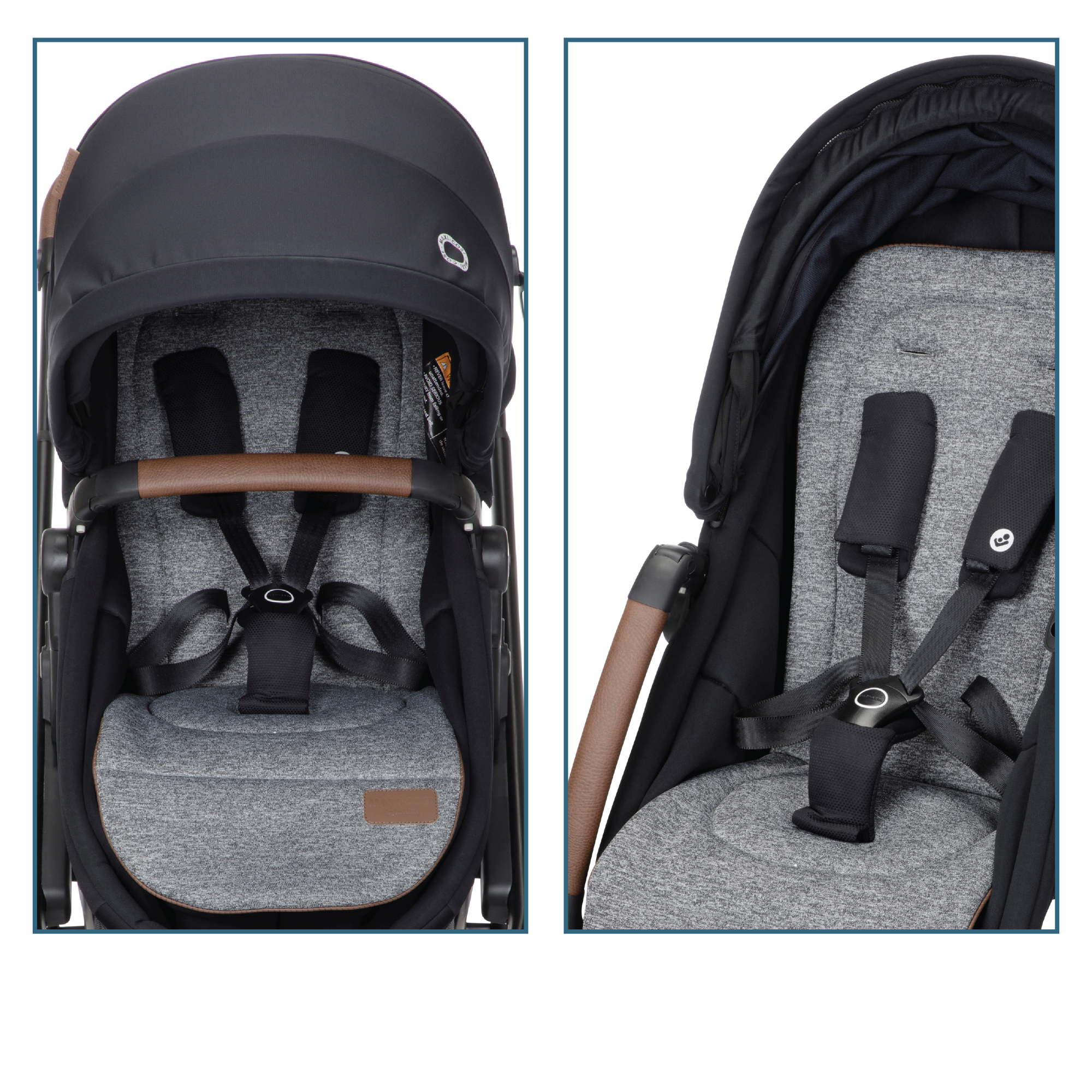 There isn’t a magical age that indicates when it’s safe for your little one to graduate to the stroller seat. The switch from infant seat or carriage mode to the stroller seat depends more on size and developmental stage than anything else. Because their muscles are still developing, your little one needs to ride fully reclined for those first few months.