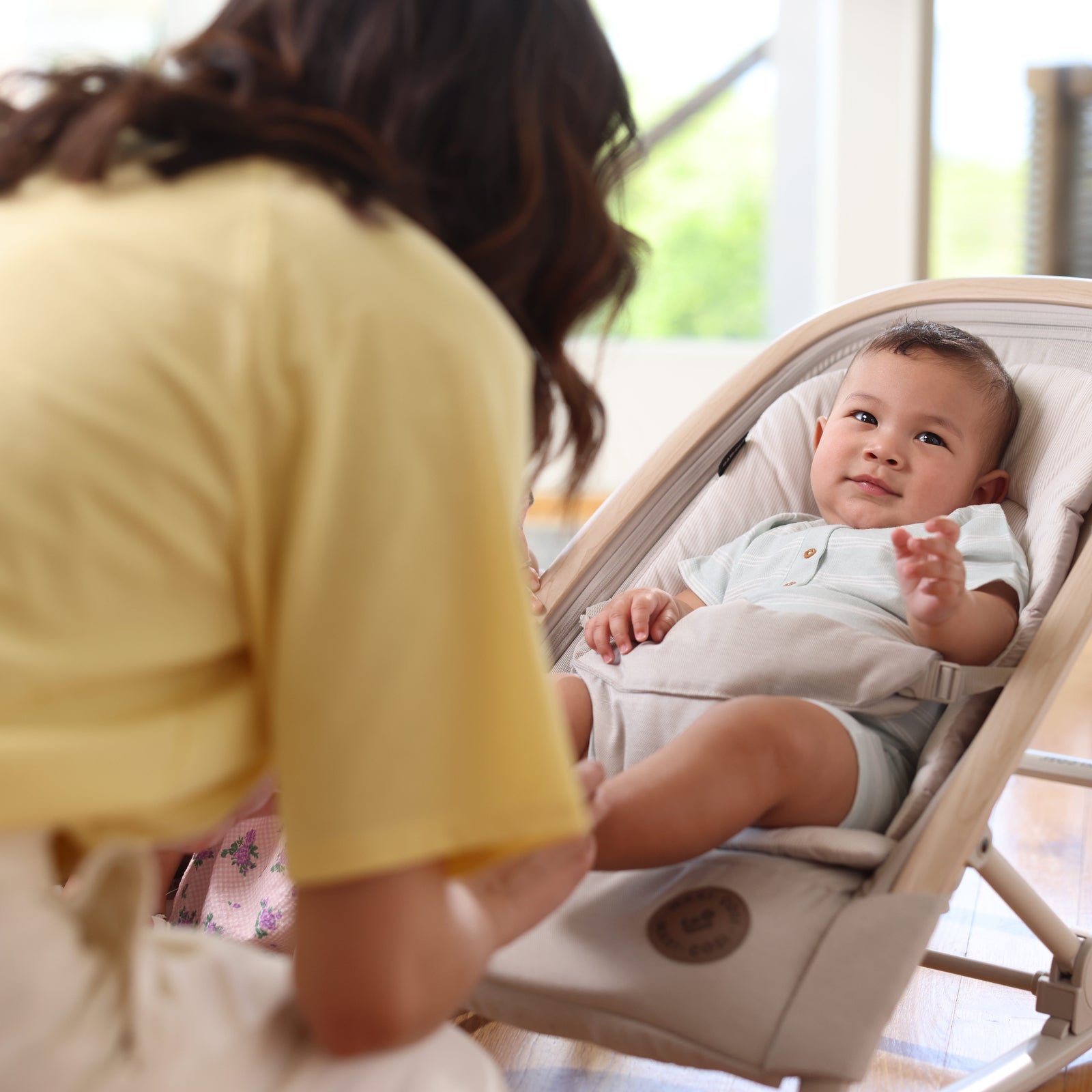 The Kori 2-in-1 Rocker offers soothing comfort for your little one with 2 modes of use: rocking or stationary. Whether you’re playing with your little one or they’re just relaxing while you take care of a few chores, Kori has you covered. The cozy inlay ensures that baby is snugly supported in the seat. Kori’s stylish, modern design and color palette make it a seamless addition to your space. It also features EcoCare––our new premium, future-friendly, 100%-recycled fabric made from plastic bottles. The yarn produced is soft, comfortable, and breathable––perfect for your little one.