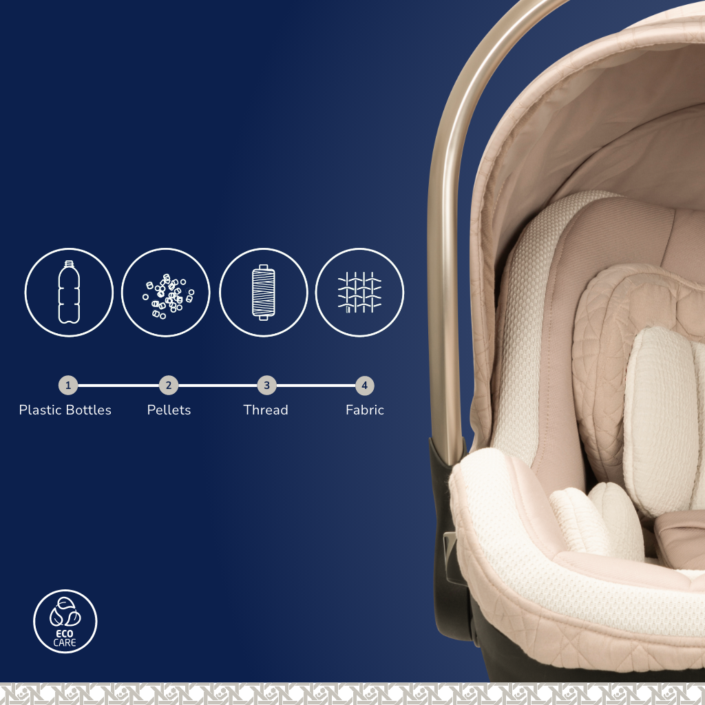 The Kindred Collection Peri 180° is designed with EcoCare fabric, our new premium, future-friendly, 100%-recycled fabric made from plastic bottles. The yarn produced is soft, comfortable, and breathable. And like all Maxi-Cosi products, PureCosi™ fabrics are made without wool or added fire-retardant treatment, which is better for your child and our planet.