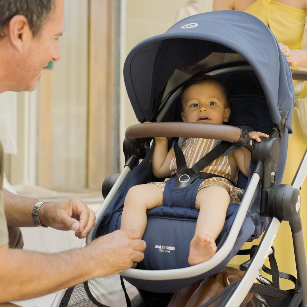 The Zelia™² Luxe 5-in-1 Modular Travel System is designed to help you stroll into parenthood with ease. So versatile, you can step out with your baby from day 1 and be prepared to journey through years of adventures together. Transition smoothly between 5 modes: switches easily between parent-facing car seat caddy, reversible carriage, and reversible stroller. The included lightweight Mico™ Luxe Infant Car Seat is made for safety plus coziness for your baby with Side Impact Protection (SIP), removable plush infant inserts, and premium PureCosi™ fabrics that keep your little one comfy, yet can be removed quickly without the need to rethread the harness when it’s time to machine wash and dry them. Vegan-leather accents on the stroller and car seat add style and comfort.