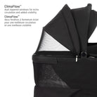 Designed for all-weather comfort, the Oria2 features a reversible memory foam mattress with a quilted side for added warmth and a perforated side for optimal airflow. ClimaFlow ventilation windows improve air circulation, while the full-coverage canopy shields from sun, wind, or rain.
