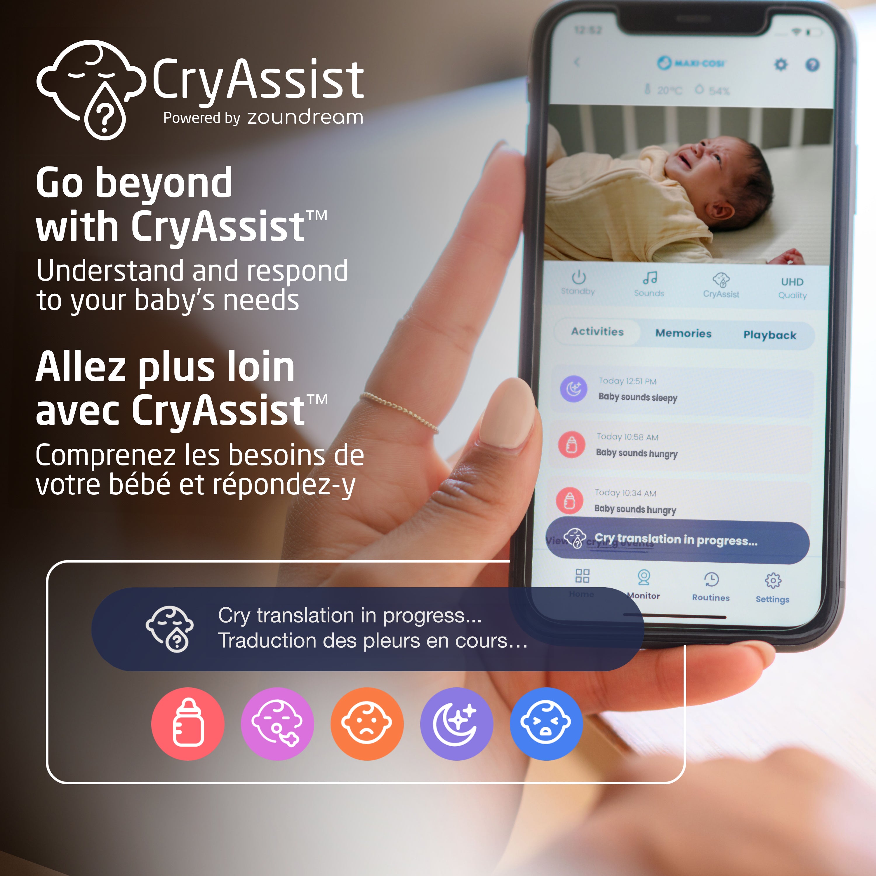 Stay connected to your child, even when you’re apart, with the See Pro 360° Baby Monitor from Maxi-Cosi. The See Pro 360 features groundbreaking CryAssist™ technology* powered by Zoundream, which translates your little one’s cries using AI so you’ll know if they are sleepy, fussy, gassy, agitated, or hungry. Other baby monitors detect a child’s cries––but by knowing just what your baby is feeling, you’ll be able to respond to their needs more quickly. Your little one is communicating with you, and with CryAssist, now you’ll know what they are saying.