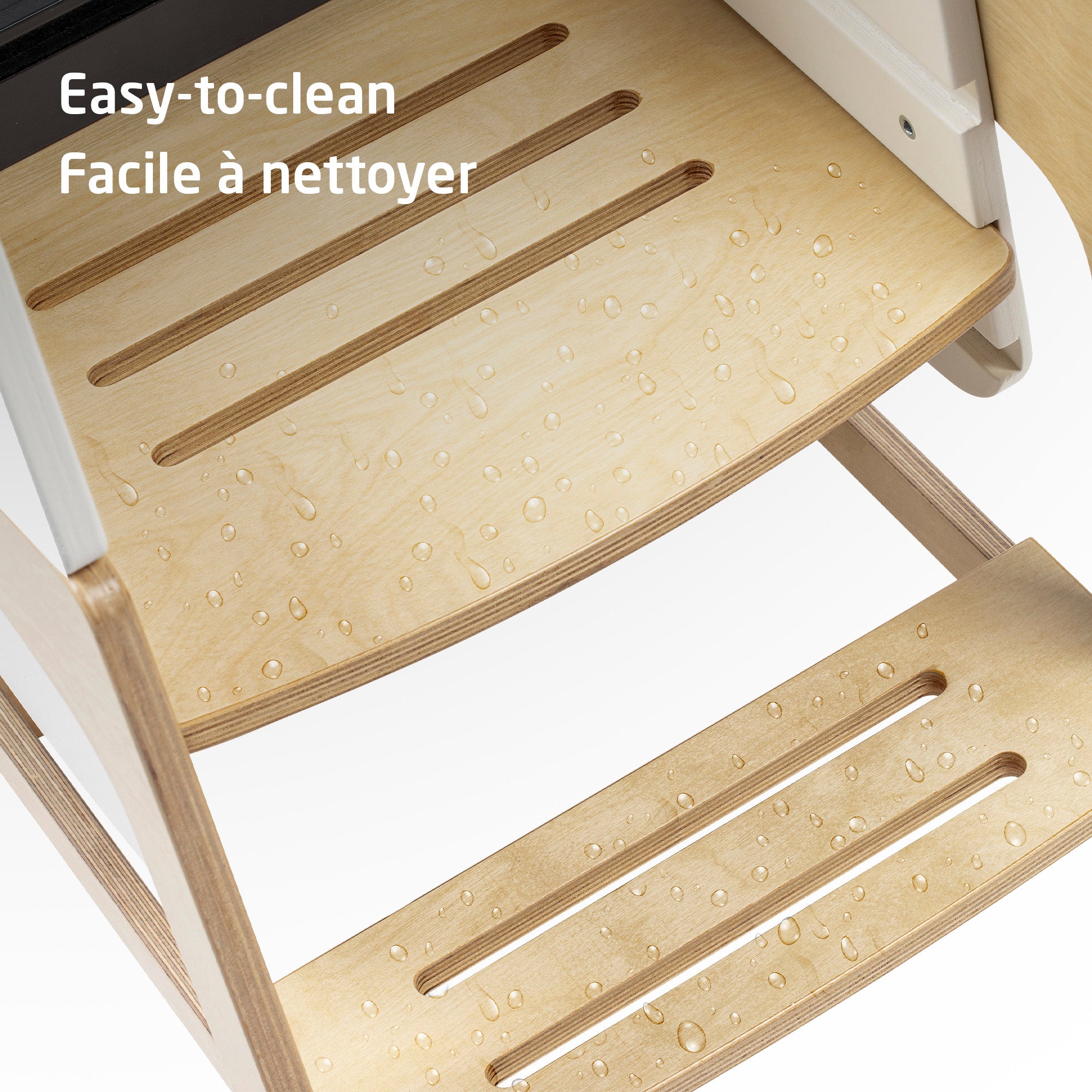 Designed with growing children in mind, Toucan features three adjustable height positions, allowing it to adapt to your child's needs as they grow. The water-resistant, chemical-free varnish makes the surface easy to clean with a damp cloth, ensuring simple and easy maintenance.