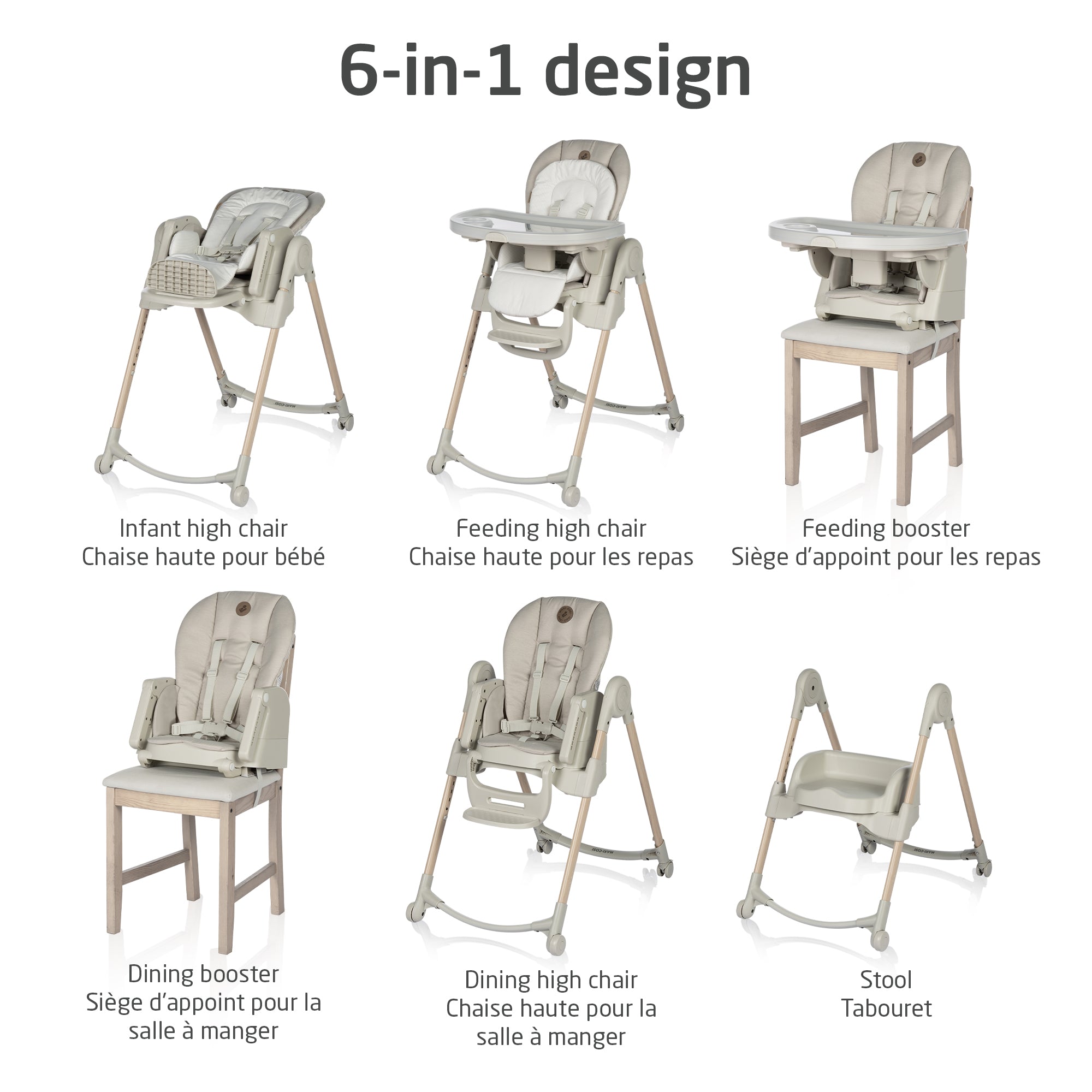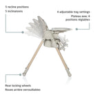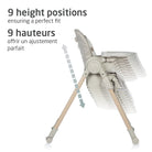 La Minla offre de nombreuses possibilités. Avec ses cinq positions d'inclinaison, ses quatre positions de plateau et ses huit hauteurs, vous pouvez l'utiliser comme siège bébé confortable grâce à son réducteur, comme chaise haute, comme rehausseur avec plateau… Les possibilités sont infinies pour avoir votre enfant à vos côtés à table. Un ajustement personnalisé à mesure que votre enfant grandit ? La chaise haute 6-en-1 Minla vous le permet.