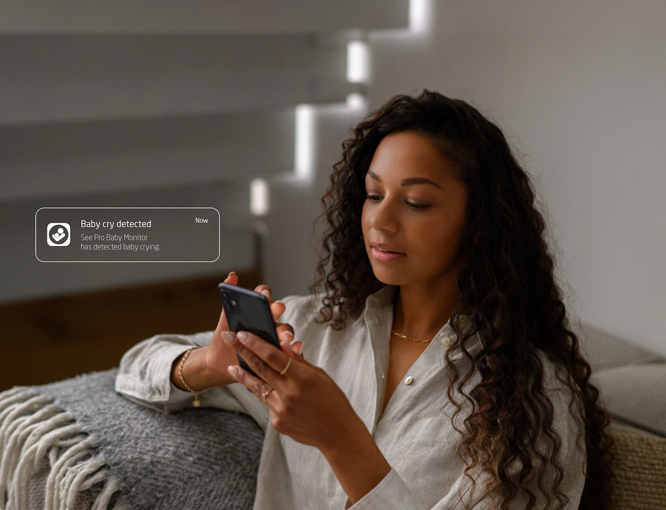 La détection des cris s'effectue directement sur l'appareil, ce qui garantit que les conversations quotidiennes restent dans les limites de votre domicile. Seuls les cris sont envoyés vers le cloud pour être traduits