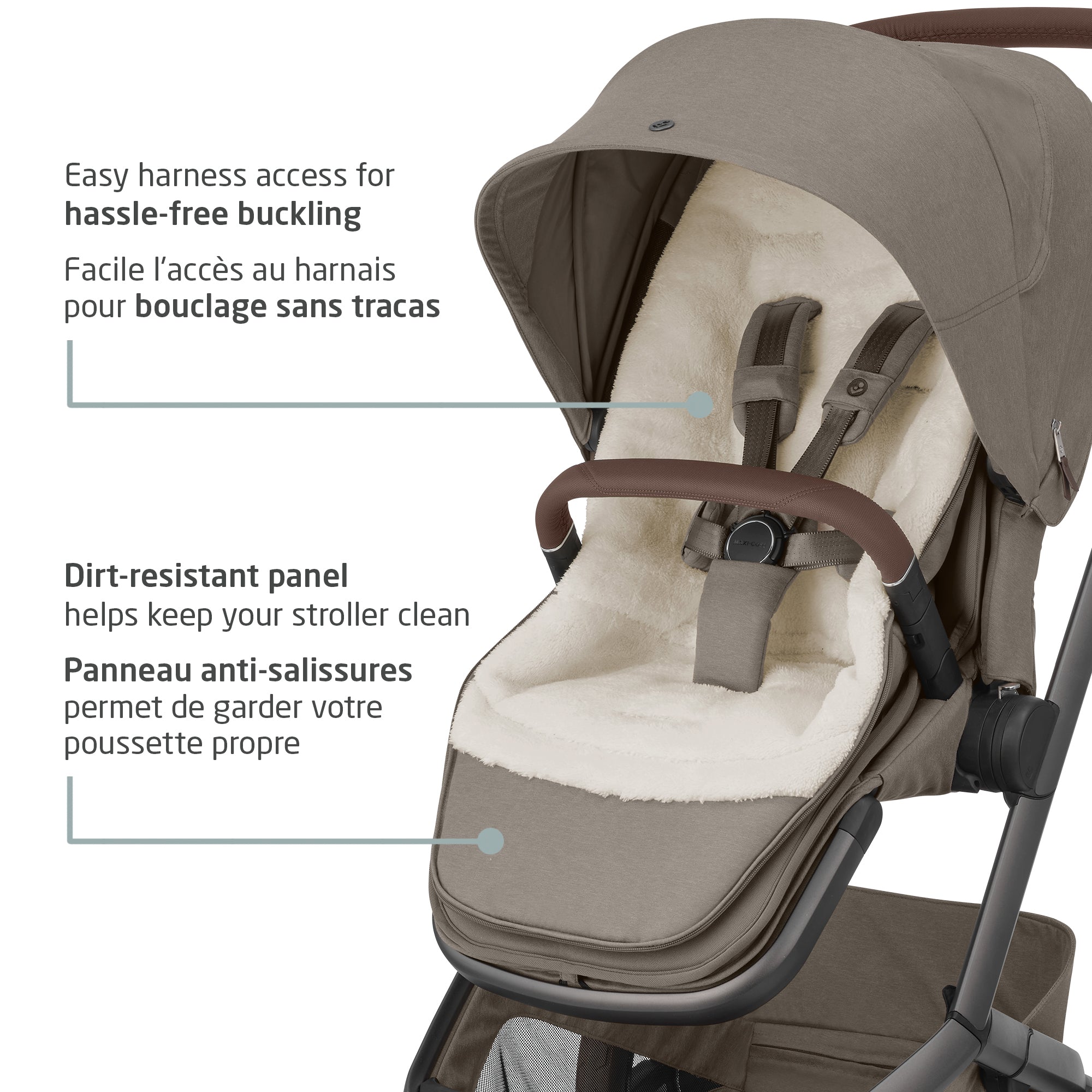 Froid, vent, pluie ou neige : la chancelière Maxi-Cosi 2 en 1 garde votre bébé au chaud et protégé en toutes circonstances. Dotée d'un intérieur en polaire peluche et d'un indice de chaleur TOG 5, elle offre un confort douillet jusqu'à -10 °C, idéale pour les hivers canadiens. Son extérieur imperméable et son panneau anti-salissures protègent votre bébé et votre poussette des intempéries, tandis que sa fermeture éclair bidirectionnelle et ses boutons-pression facilitent l'ajustement en fonction des conditions météorologiques. Fabriquée avec soin à partir de tissus Eco Care 100 % recyclés, cette chancelière est lavable en machine pour un confort optimal au quotidien. Elle reste en place une fois pliée et s'adapte à la plupart des poussettes Maxi-Cosi, offrant une harmonie de couleurs parfaite et un confort accru à chaque trajet. Utilisez-la comme chancelière complète ou transformez-la en doublure de siège moelleuse pour une polyvalence toute l'année.