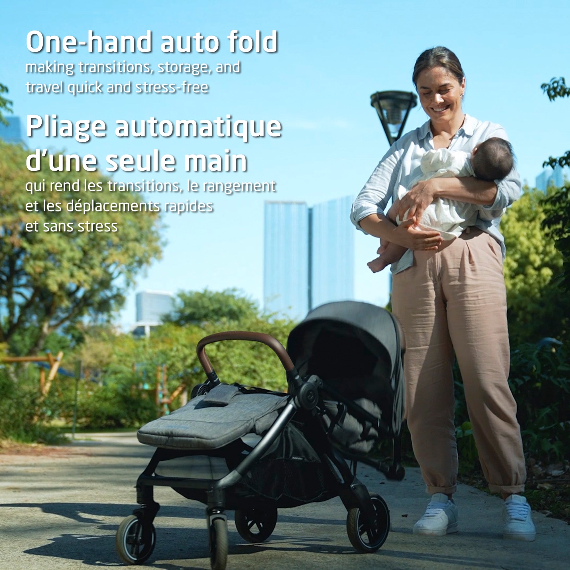 Les journées chargées exigent de la simplicité. Grâce à son système de pliage automatique d'une seule main, l'Eva se plie d'une simple pression sur un bouton, ce qui est idéal pour les parents qui jonglent avec des sacs, du café ou des petites mains. Mieux encore, les adaptateurs innovants pour sièges d'auto se plient avec la poussette, il n'est donc pas nécessaire de les retirer avant de la fermer. Des transitions rapides. Moins de tracas. Plus de liberté.