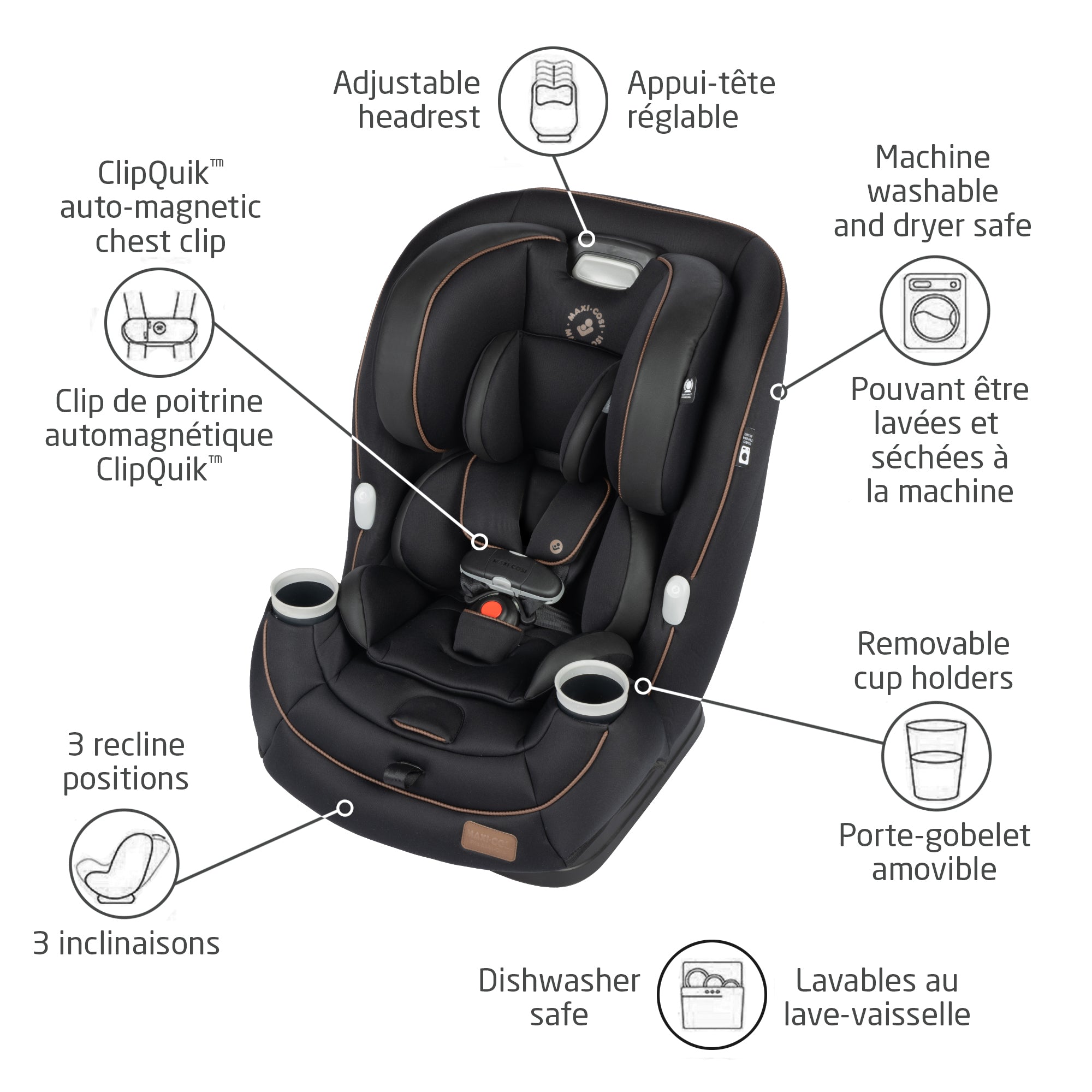 Avec le siège auto convertible tout-en-un Pria, vous avez l'assurance d'un siège auto sûr et confortable pour votre enfant, de la naissance à 10 ans. Les enfants peuvent voyager dos à la route de 1,8 à 18 kg ; face à la route jusqu'à 29 kg ; et jusqu'à 45 kg en mode rehausseur. Ce sera peut-être le seul siège auto dont vous aurez besoin. La conversion du siège auto convertible tout-en-un Pria à chaque étape est simple et intuitive, vous permettant de régler rapidement le siège auto. Il offre une grande adaptabilité grâce à ses 3 positions d'inclinaison, ses 5 hauteurs d'appui-tête et son harnais d'épaule QuickFit.