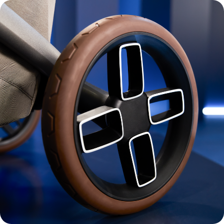 Fame is also designed with CosiCruise, our all-wheel suspension with large puncture-proof tires for a smooth, secure ride over mixed terrains, and a one-touch flip-flop-friendly brake.