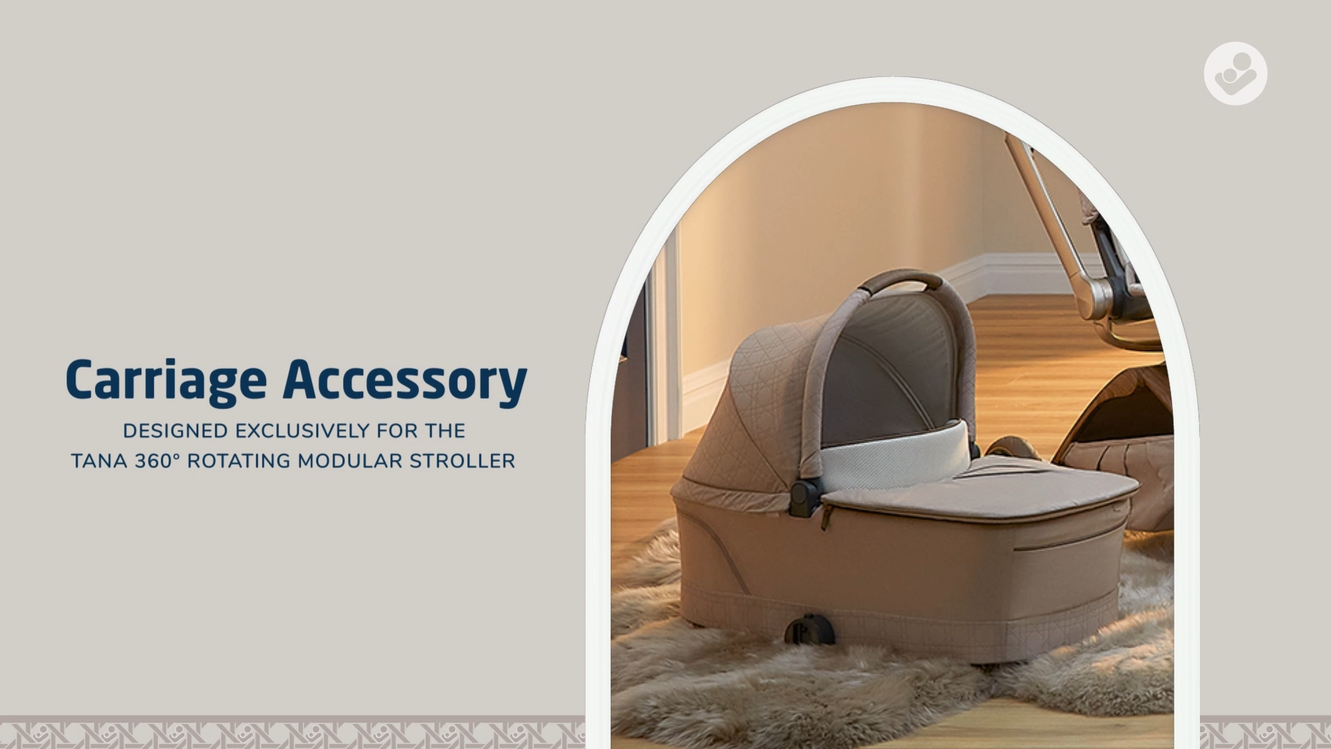 As part of the Maxi-Cosi Kindred Collection, our Carriage Accessory reflects a timeless design crafted with premium materials. It conveniently connects to the Tana 360° Rotating Modular Stroller, without having to use additional adapters—and rotates 360°.