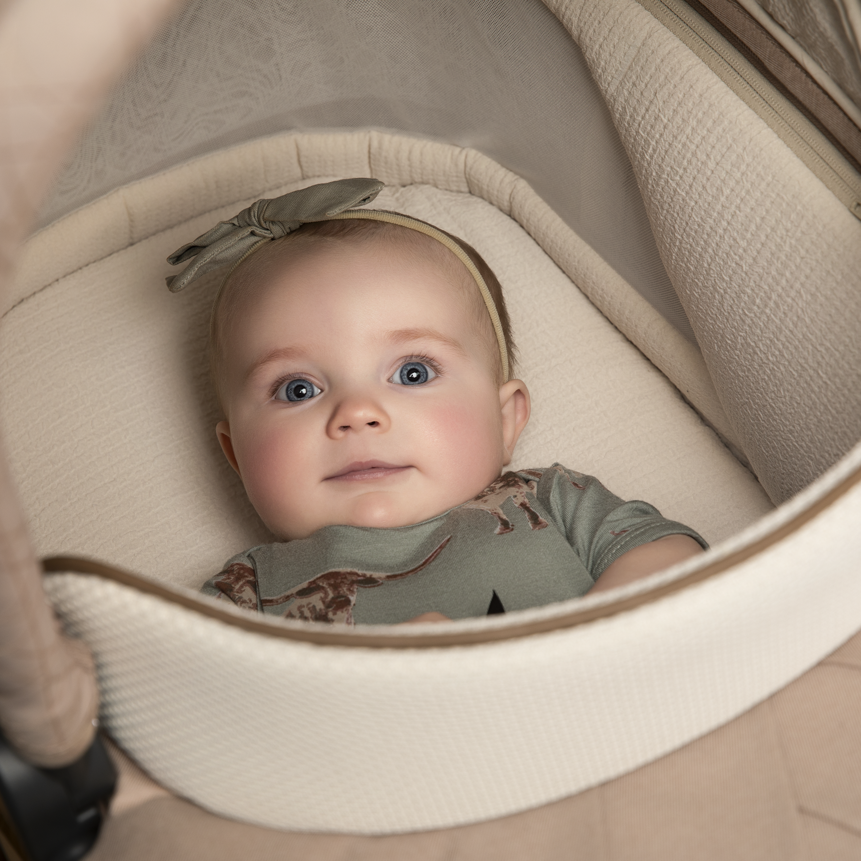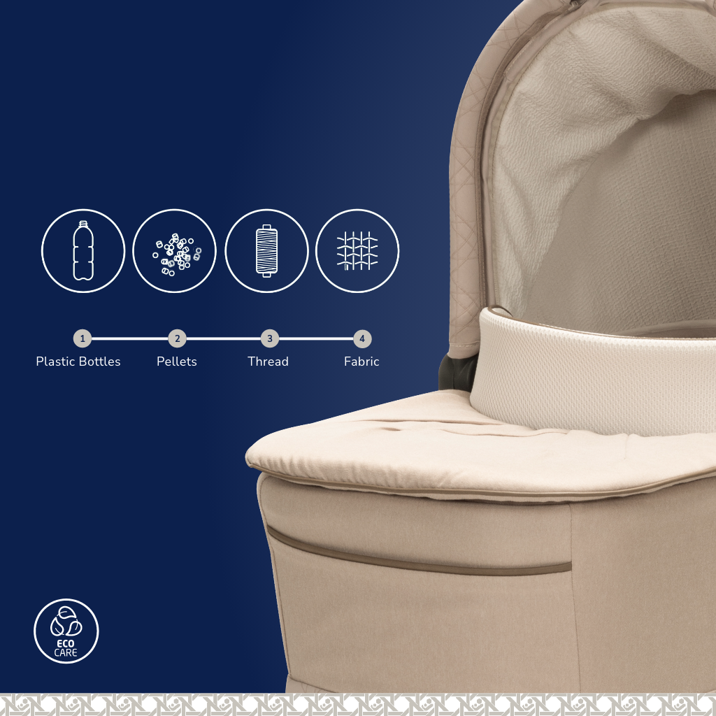 The Carriage Accessory is designed with EcoCare, our new premium, future-friendly, 100%-recycled fabric made from plastic bottles. The yarn produced is soft, comfortable, and breathable––providing the ultimate in style and comfort for your little one.