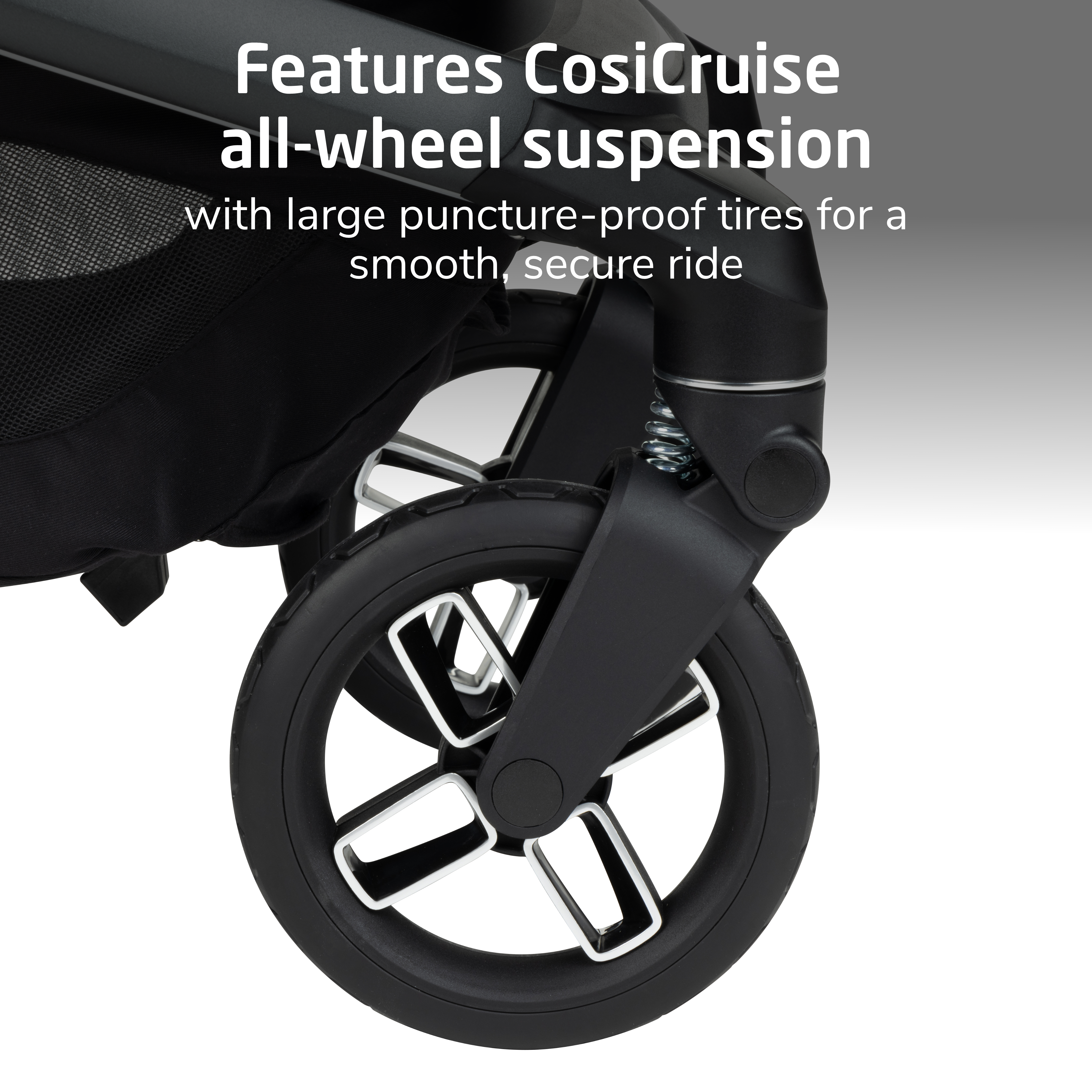 Fame is also designed with CosiCruise, our all-wheel suspension with large puncture-proof tires for a smooth, secure ride over mixed terrains, and a one-touch flip-flop-friendly brake.