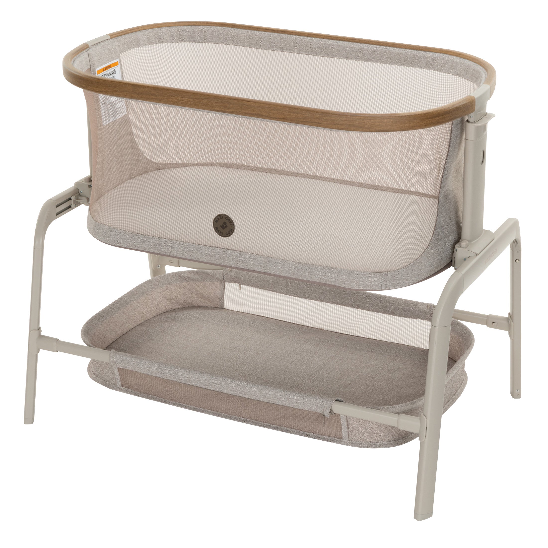 Many parents rest better knowing their infant is in close proximity when they sleep, and appreciate the convenience of keeping diaper changes and nighttime feeding nearby in the middle of the night as well. This bed side bassinet adjusts up and down and glides through 3 height adjustable slide positions, so you can find the right fit for nighttime caregiving. Its sophisticated, modern color palette is thoughtfully designed to become a subtle addition to your nursery décor. Select color options feature EcoCare—our new premium, future-friendly, 100% recycled fabric made from plastic bottles; the yarn produced is soft, comfortable, and breathable—perfect for newborns until 20 lbs. The breathable mesh sides allow airflow and help you feel connected while baby rests soundly on the comfy mattress. Stow extra pajamas and essentials in the spacious storage basket to avoid searching for those must-haves in the dark. This foldable bassinet travels easily: just fold it flat, place it in the travel bag, and you’re ready for sleepovers at Grandma’s or a hotel getaway. With Iora, at the end of the day, it’s all about comfort.