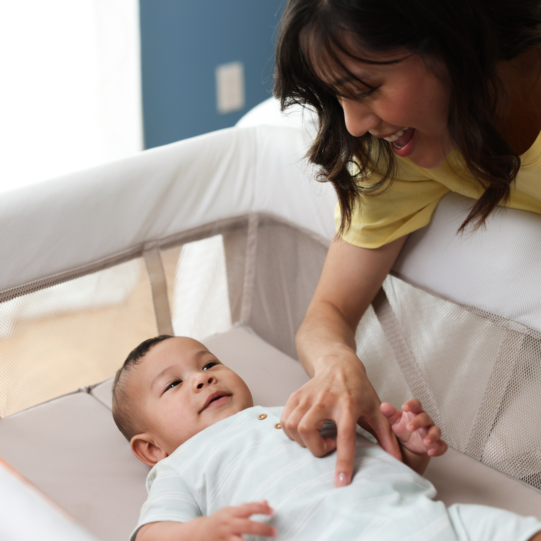 This portable play yard also features EcoCare––our premium, future-friendly, 100%-recycled fabric made from plastic bottles. The yarn produced is soft, comfortable, and breathable––perfect for your little one. With the Swift Play Yard, it’s time to Play. Sleep. Repeat.