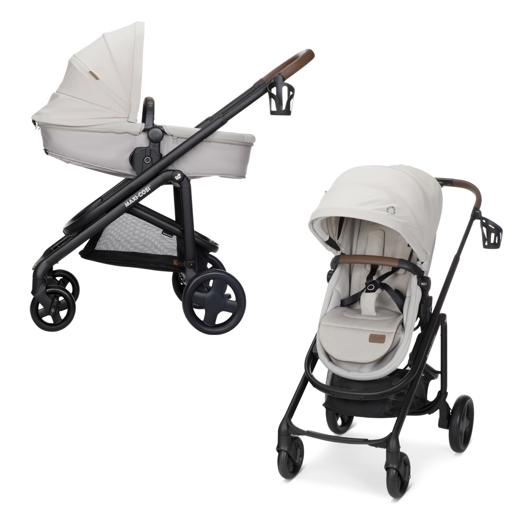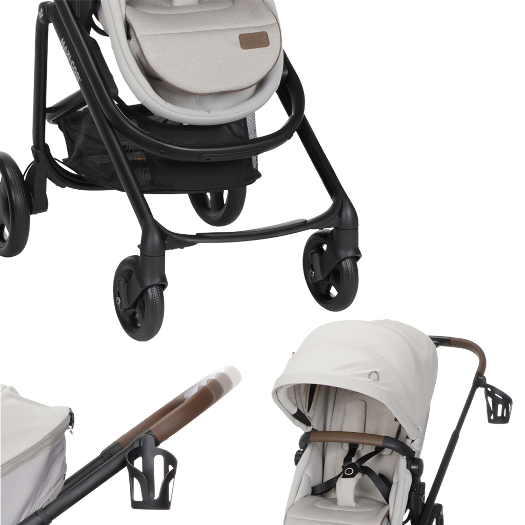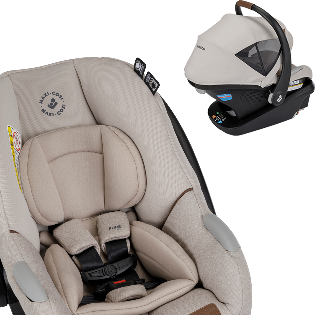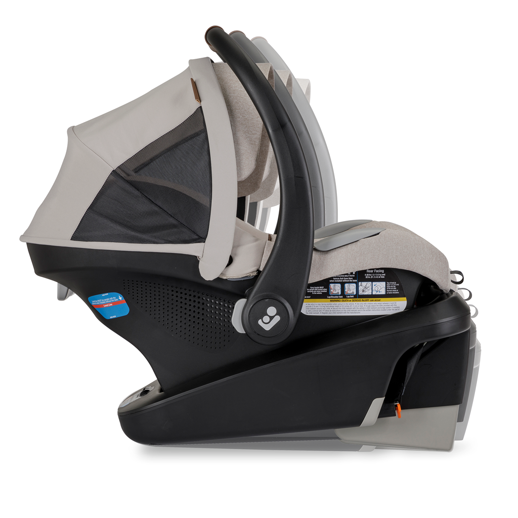 The Mico™ Luxe+ Infant Car Seat (included) provides premium comfort with plush PureCosi™ fabrics and padding made without wool or added fire retardant treatment. Plus, the shell is designed with ClimaFlow™ technology for added ventilation to keep babies cooler, and the ventilated canopy allows increased airflow. The vegan-leather trim on the contoured handle adds style and provides a more comfortable carrying experience.