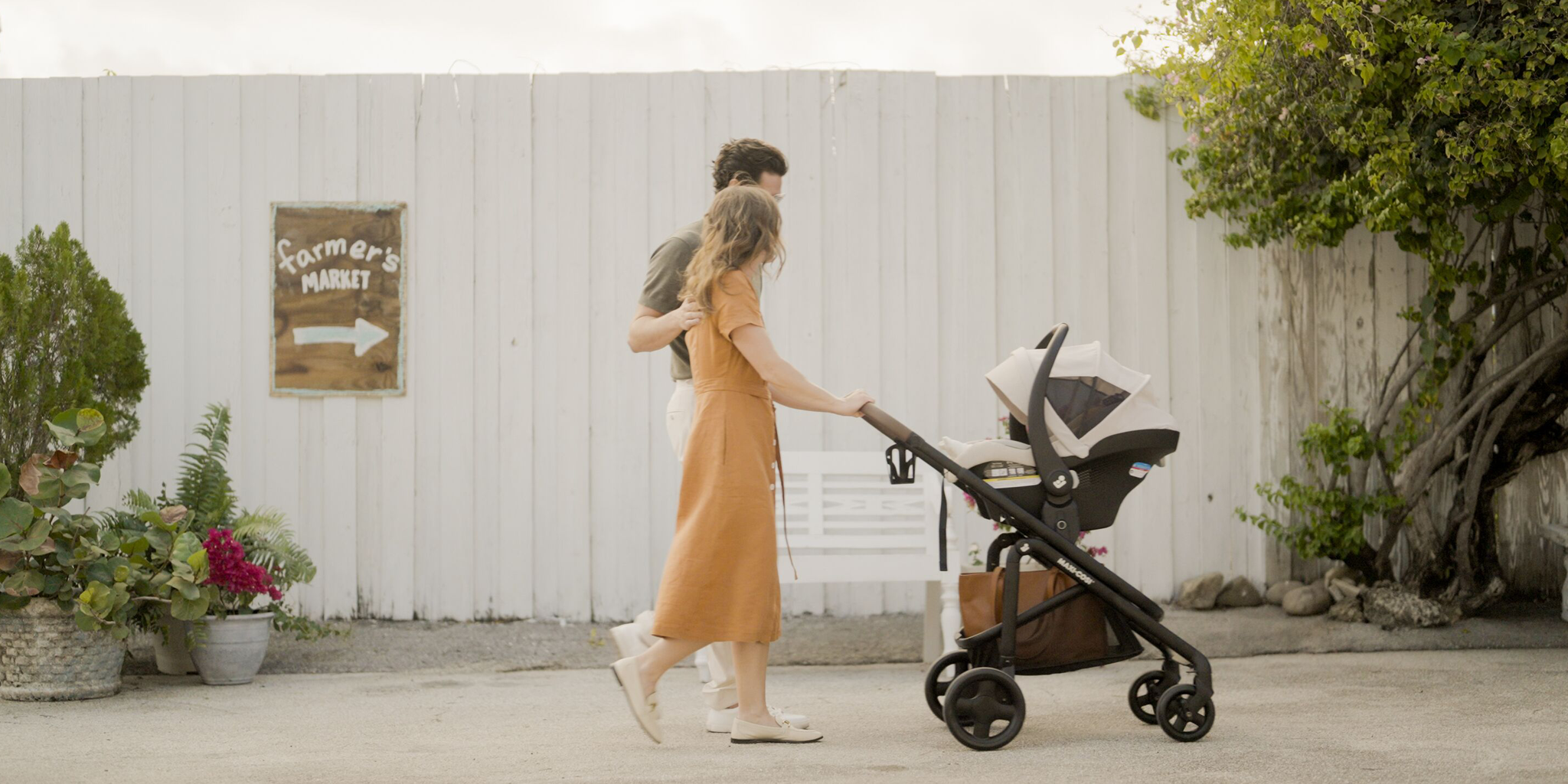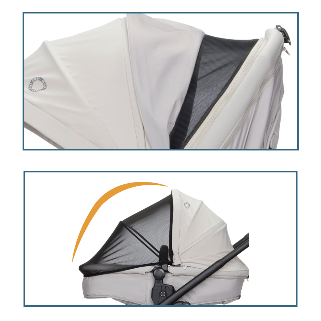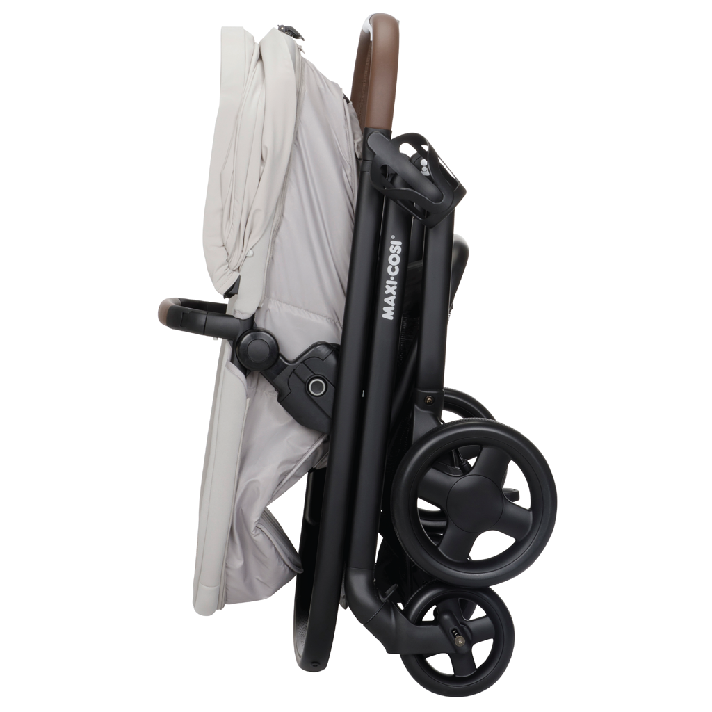 The Mico™ Luxe+ Infant Car Seat (included) provides premium comfort with plush PureCosi™ fabrics and padding made without wool or added fire retardant treatment. Plus, the shell is designed with ClimaFlow™ technology for added ventilation to keep babies cooler, and the ventilated canopy allows increased airflow. The vegan-leather trim on the contoured handle adds style and provides a more comfortable carrying experience.