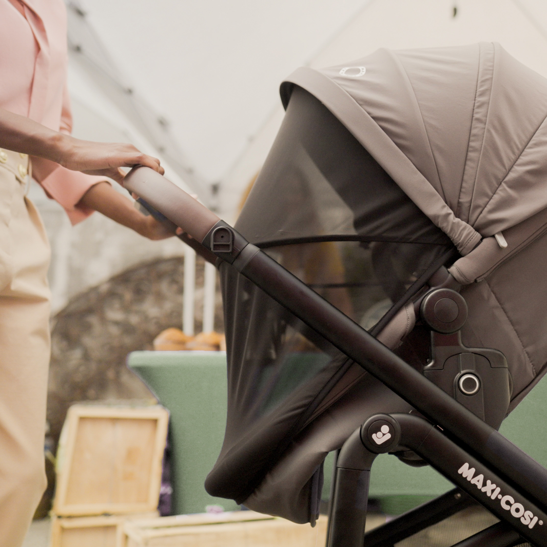 In stroller mode, choose from 4 reclining positions to give your little one a relaxing ride. When you want added privacy or protection from the elements, extend the 360° MaxShade canopy with protective mesh over the entire seat. Tuck all you need for your excursions in the extra-large storage basket. All these features and more are cleverly designed into the lightweight frame with SmoothRide tire technology for nimble maneuvering, and 4 handle positions for a more comfortable push. With the Tayla Max, you’re ready to adventure in every direction.